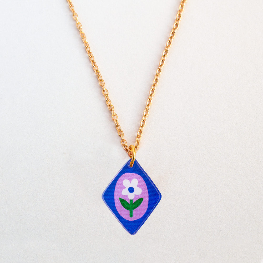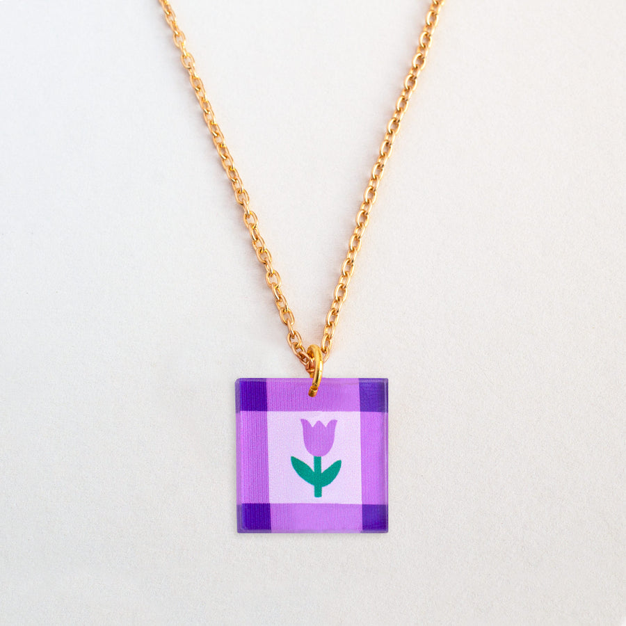 Floral Charm Square Pendant Necklace - Lilac