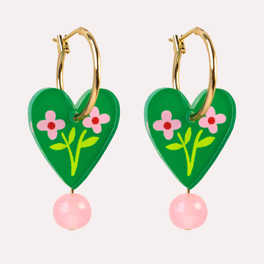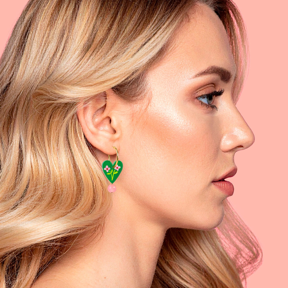 Charm Earrings in Folk Floral Green