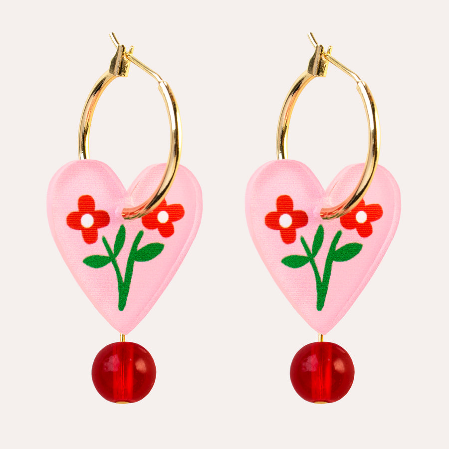 Charm Earrings in Folk Floral Pink