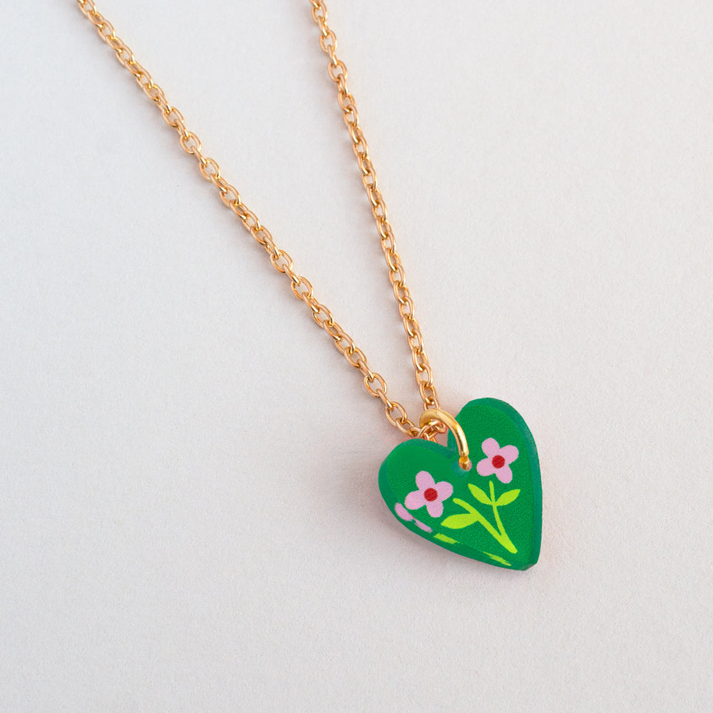 Heart Floral Charm Pendant Necklaces